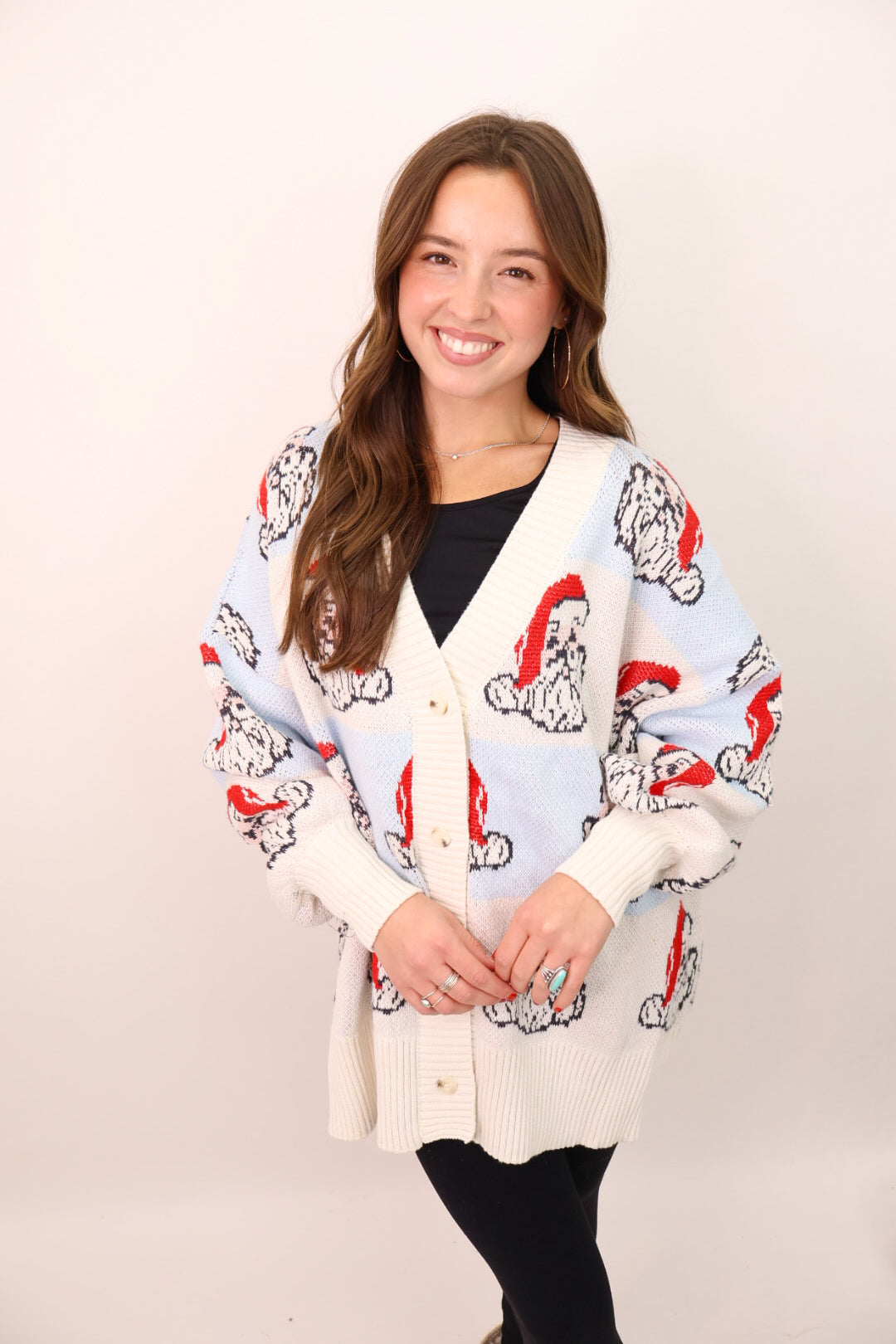 This one is pure holiday joy. Our Santa Knit Cardigan is soft, stretchy, and covered in the cutest retro Santa faces — the kind that instantly puts you in a festive mood the second you throw it on. It’s a relaxed, cozy fit that works with leggings, denim, or joggers… truly an effortless “throw on and go” sweater for school drop off, office days, or all the fun holiday things. Button it up, leave it open, layer it over a graphic tee — you can’t go wrong.